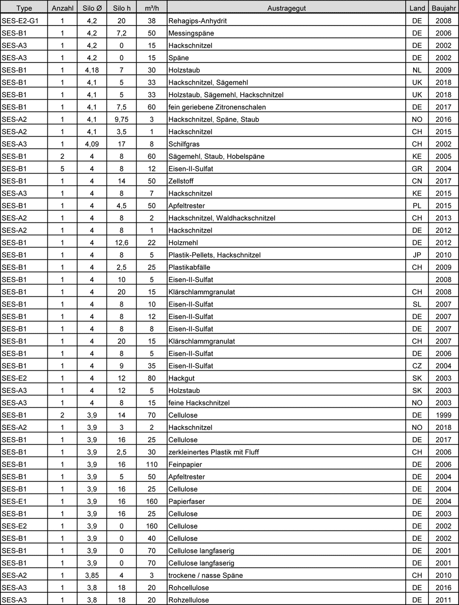 Sortierung: Silodurchmesser absteigend
