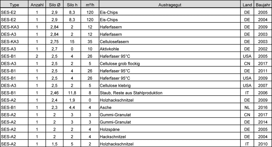 Sortierung: Silodurchmesser absteigend