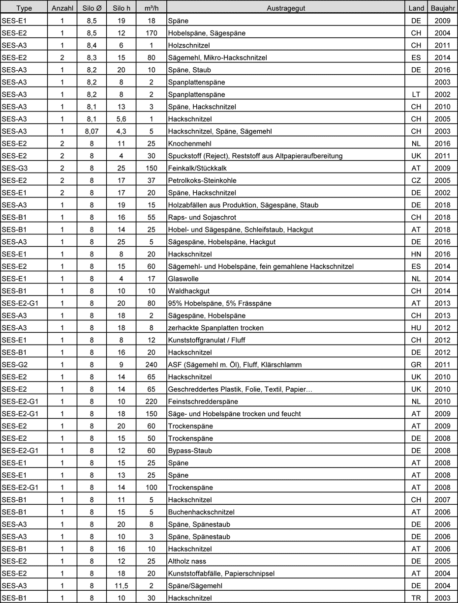 Sortierung: Silodurchmesser absteigend